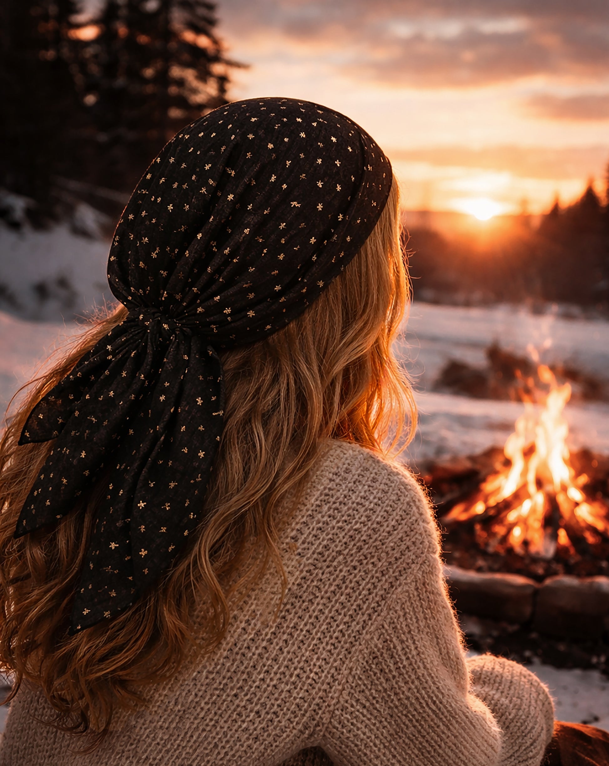 - BLACK GOLD NON SLIP HEAD WEAR; CHEMO CANCER TICHEL FRIENDLY: Made to be comfy with or without hair! This pre-tied bandana is also super easy to put on and take off!